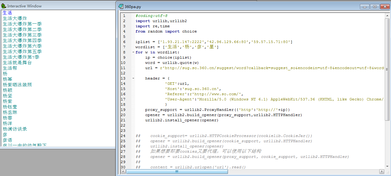 几乎所有的搜索引擎都提供联想词提示,这个小脚本其实功能性不大,只当作使用urllib2发http请求和如何使用代理来访问
