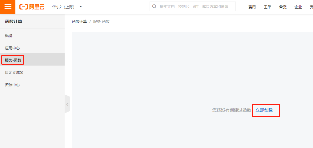 打开 https://www.aliyun.com/product/fc 如果没有开通请先点击开通,开通之后进入“管理控制台”,